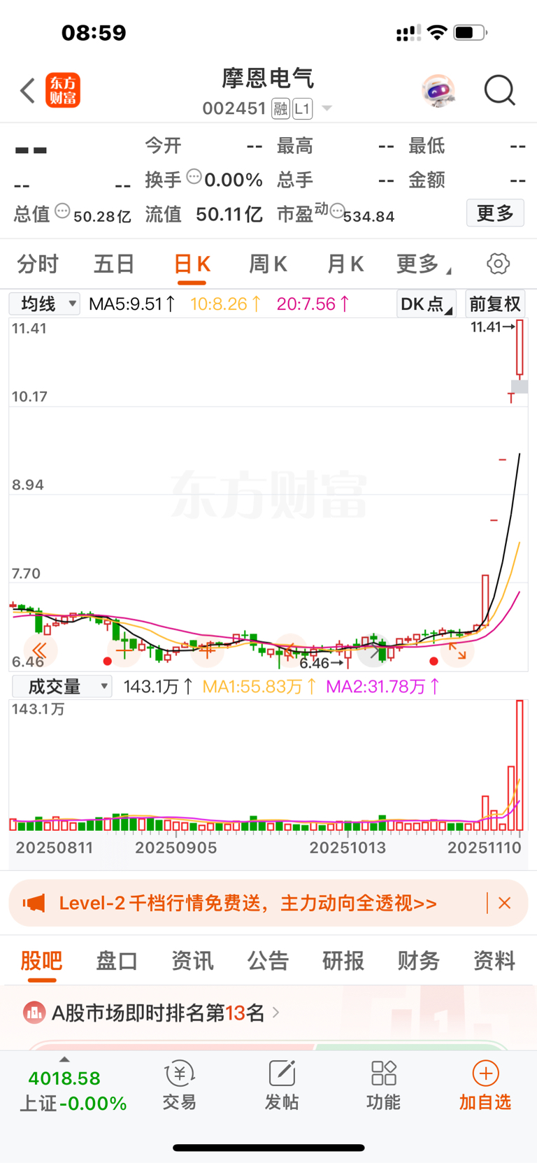 的确摩恩电气五连板,希望下一个是金杯电工!
