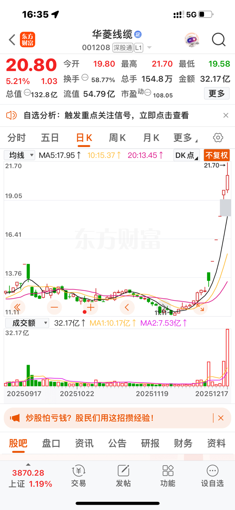 同是一个地方,同是一个行业的华菱线缆连续涨停,股价已经翻倍,新入驻金杯电工闻名天