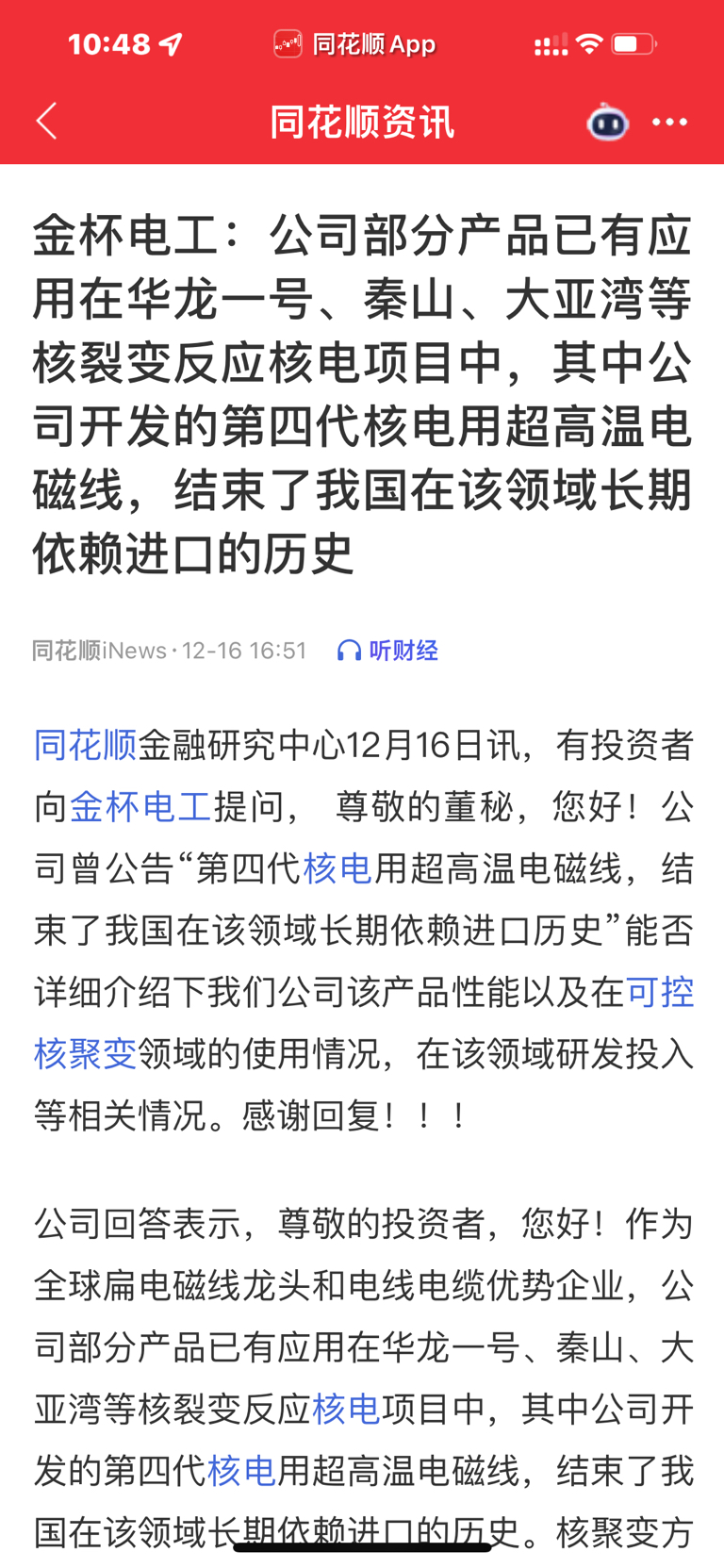 $金杯电工(SZ002533)$ 下周可控核聚变题材继续热炒