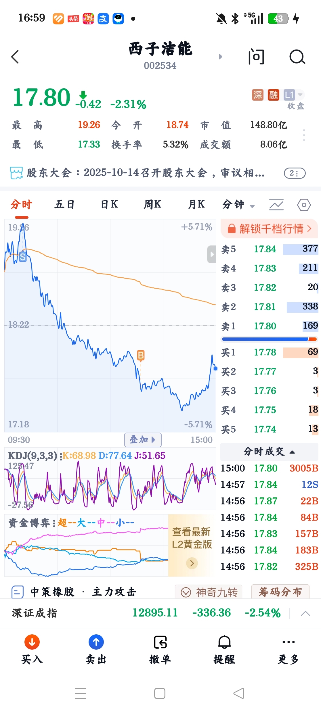 $西子洁能(SZ002534)$ 今天19.24成功逃顶,17.65又买回来了