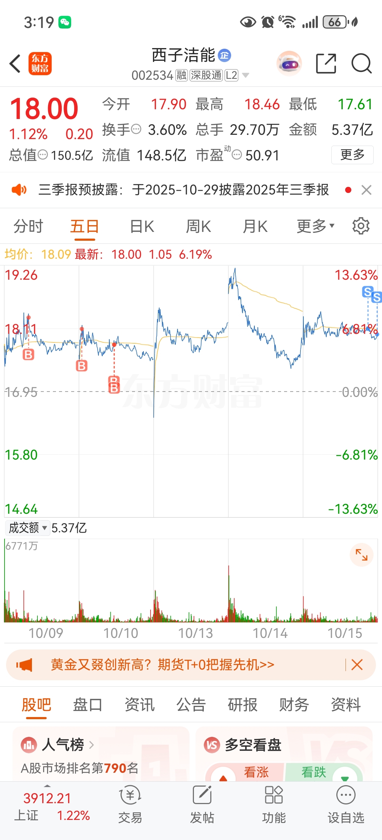 $西子洁能(SZ002534)$ 昨天赚钱没走,今天大盘这么好,它这个鬼样子。怕了,走了,有机会再来。大盘实在太高,留点仓位。明天周四,有阴影。