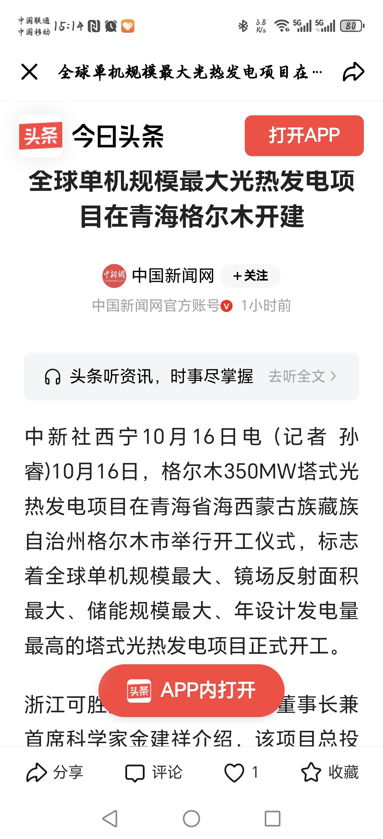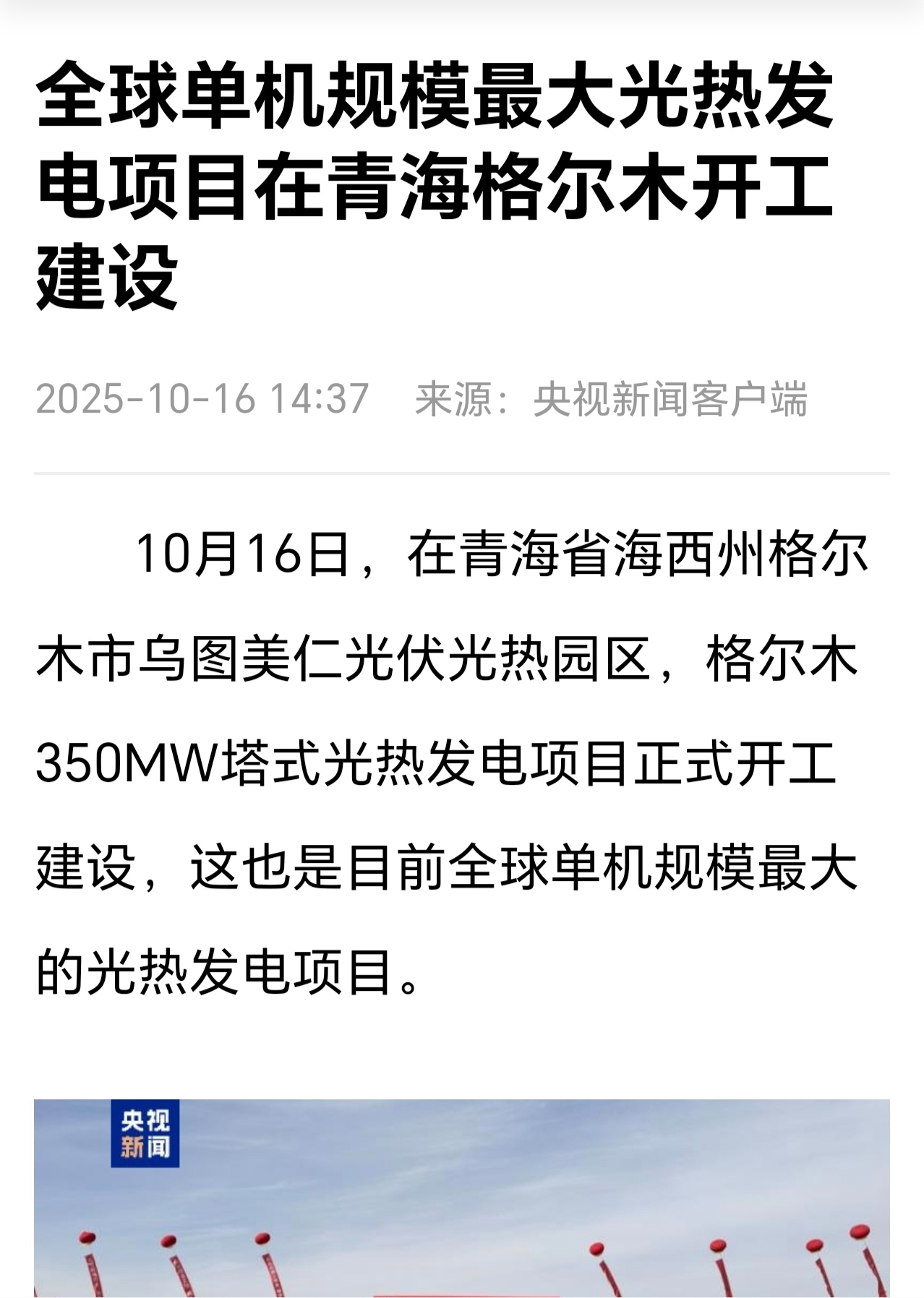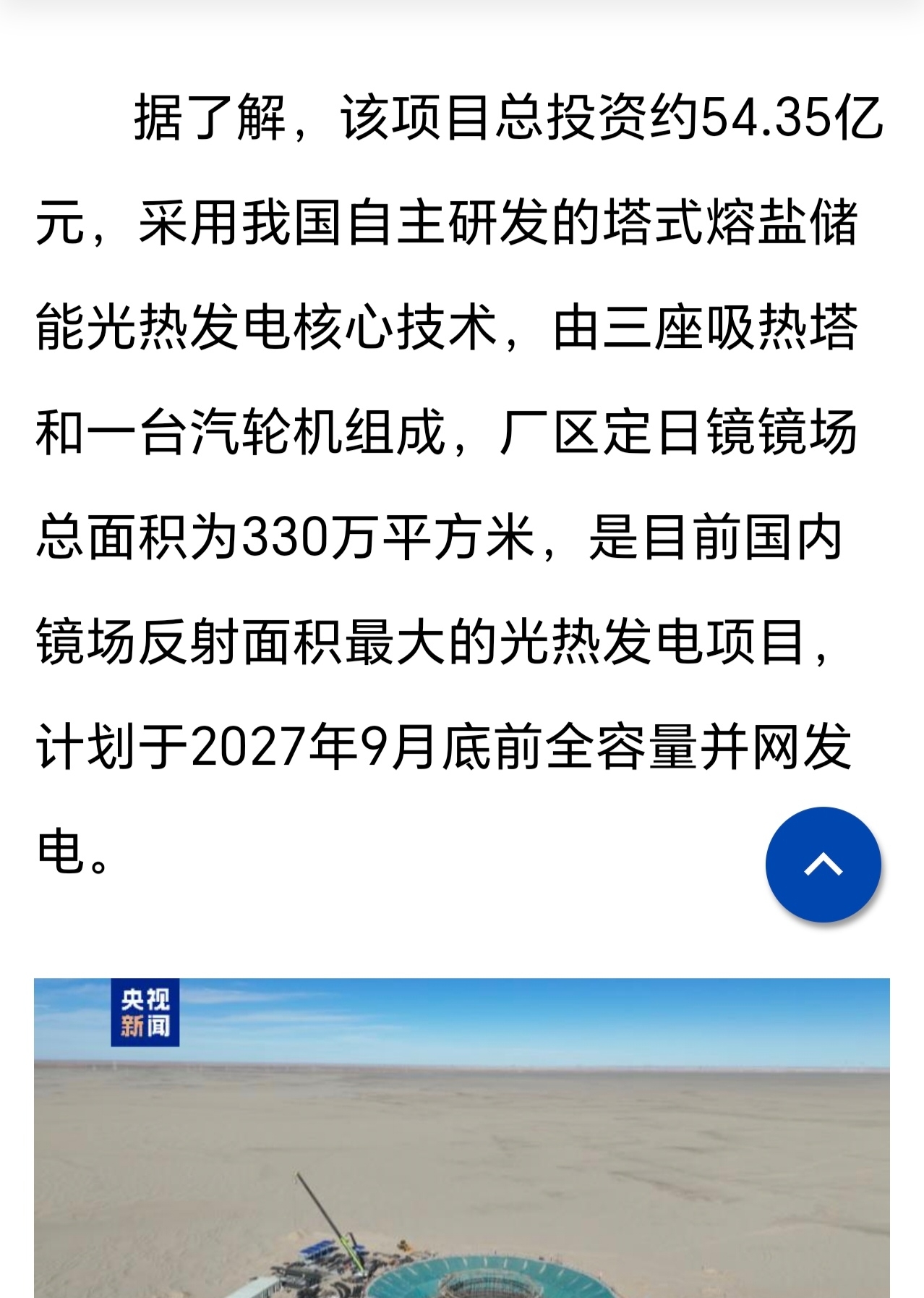 熔盐储能是光热发电的核心环节,该项目采用了14小时储热时长的熔盐储热系统。西子洁能是熔盐储能领域的重要企业,其自主研发的50MW熔盐储能系统已成功投运,并且是可胜技术吸热换热系统重要供应商,可胜技术正是青海亿储格尔木350MW塔式光热发电项目的开发主体。