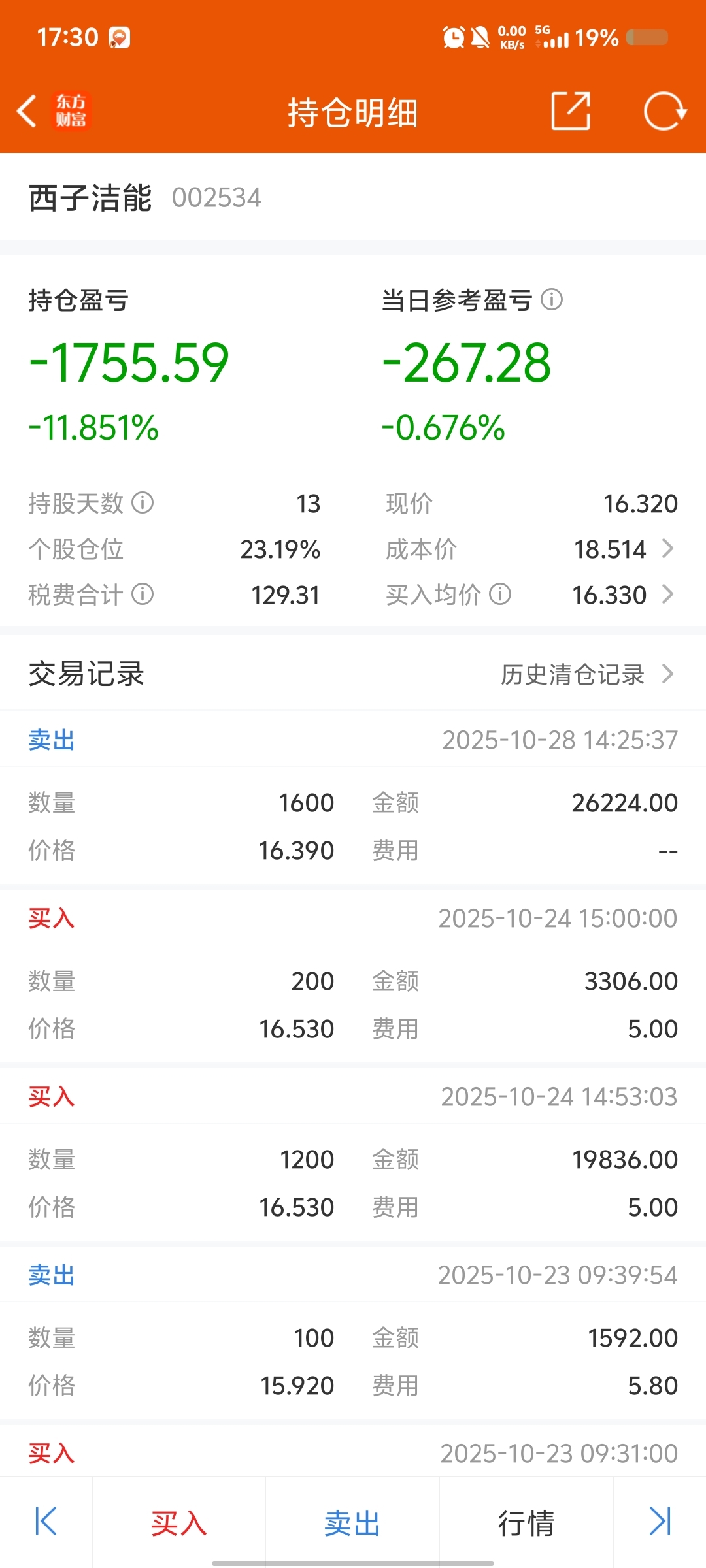 $西子洁能(SZ002534)$ 今天减仓减对了吗?等跌下来再继续加仓,力争回本