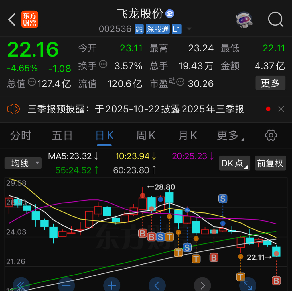 $飞龙股份(SZ002536)$ 真倒霉,买入那天就是阶段高点了。