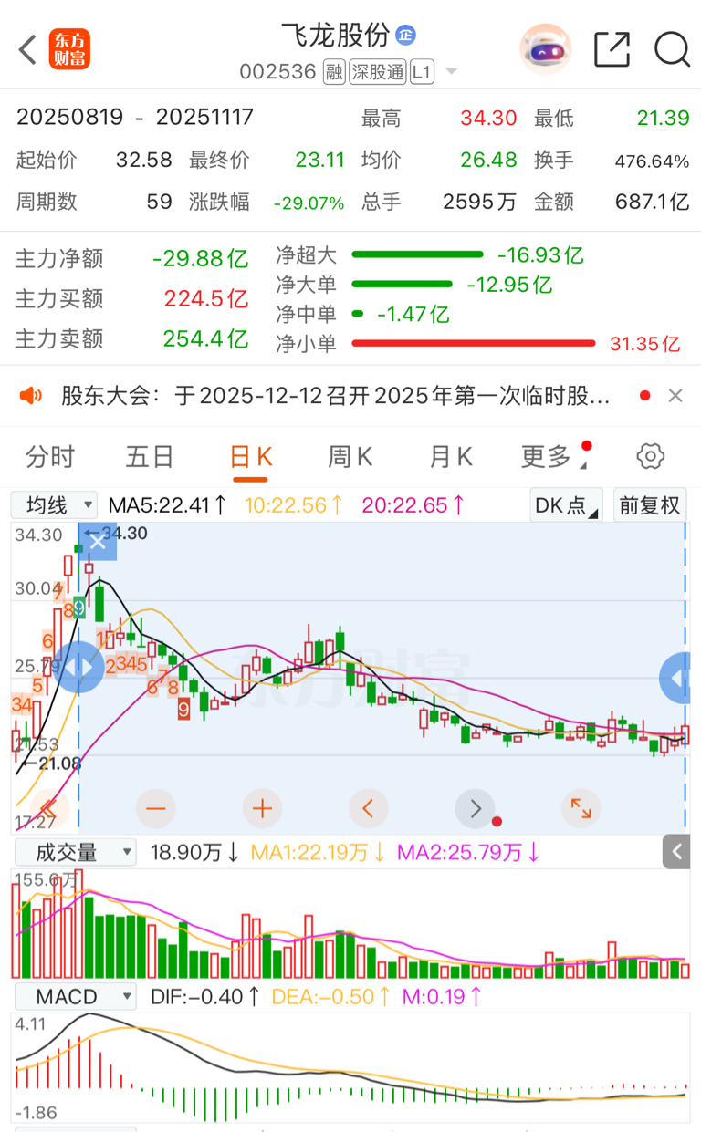 飞龙股份已调整3个月,股价跌幅算得上是跌幅超过50%!