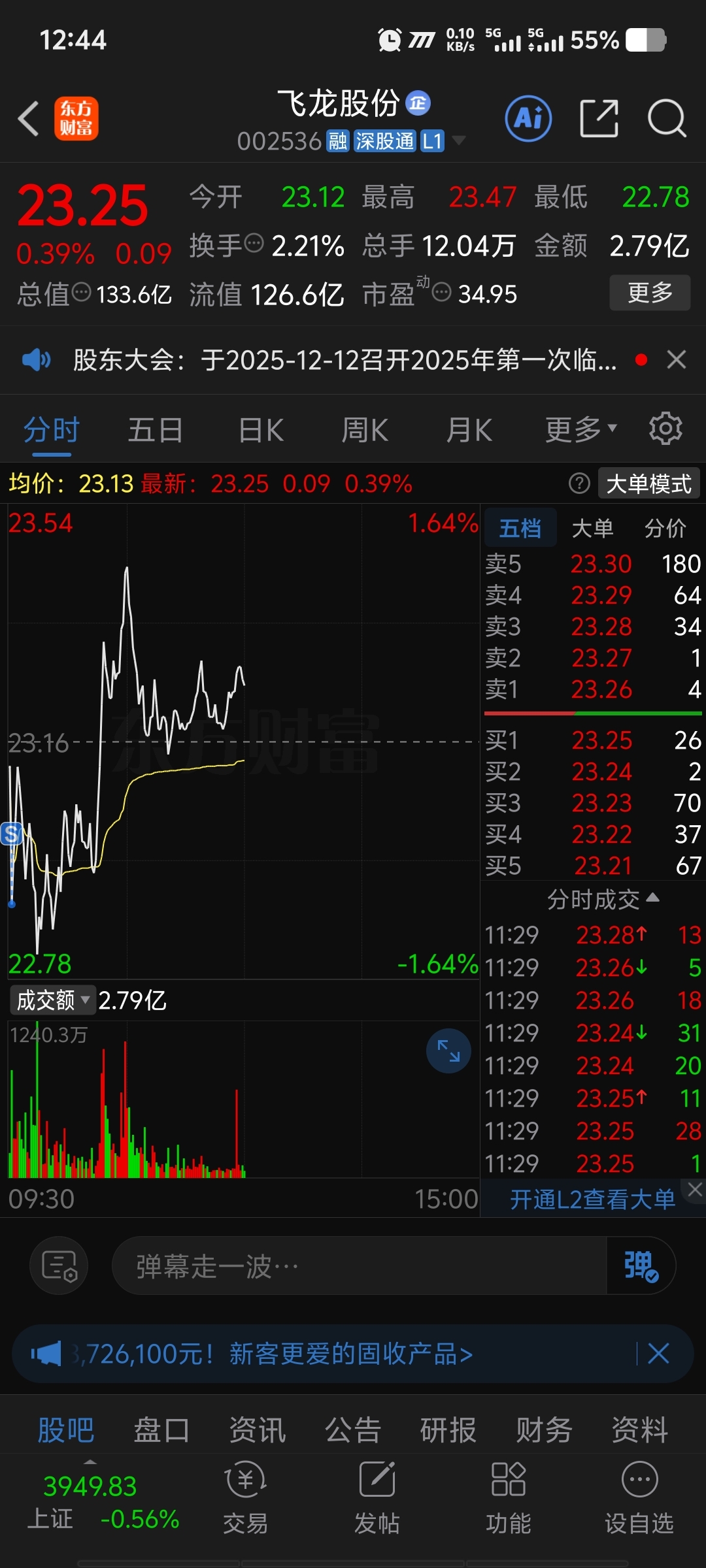 $飞龙股份(SZ002536)$ 开盘一分钟就送筹码了