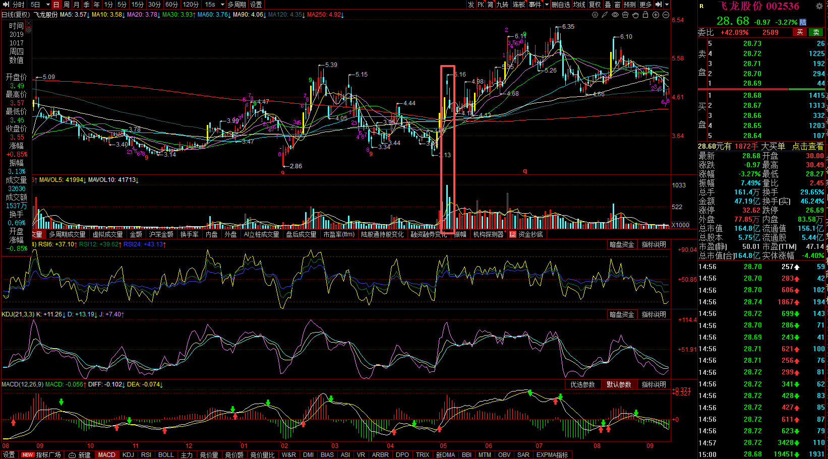 @飞龙股份 这个位置和图片走势很接近,没有破前高,放巨量2根阴线,也是一假一真。所以我还是相信还会有新高,只是可能还会回调,减持的消息怎么也得影响,不过觉得这是为了洗盘发的消息,长期这票是发利好就是为了走,发利空就是为了吸。上2个涨停已经出了一半了,剩下的格局吧。