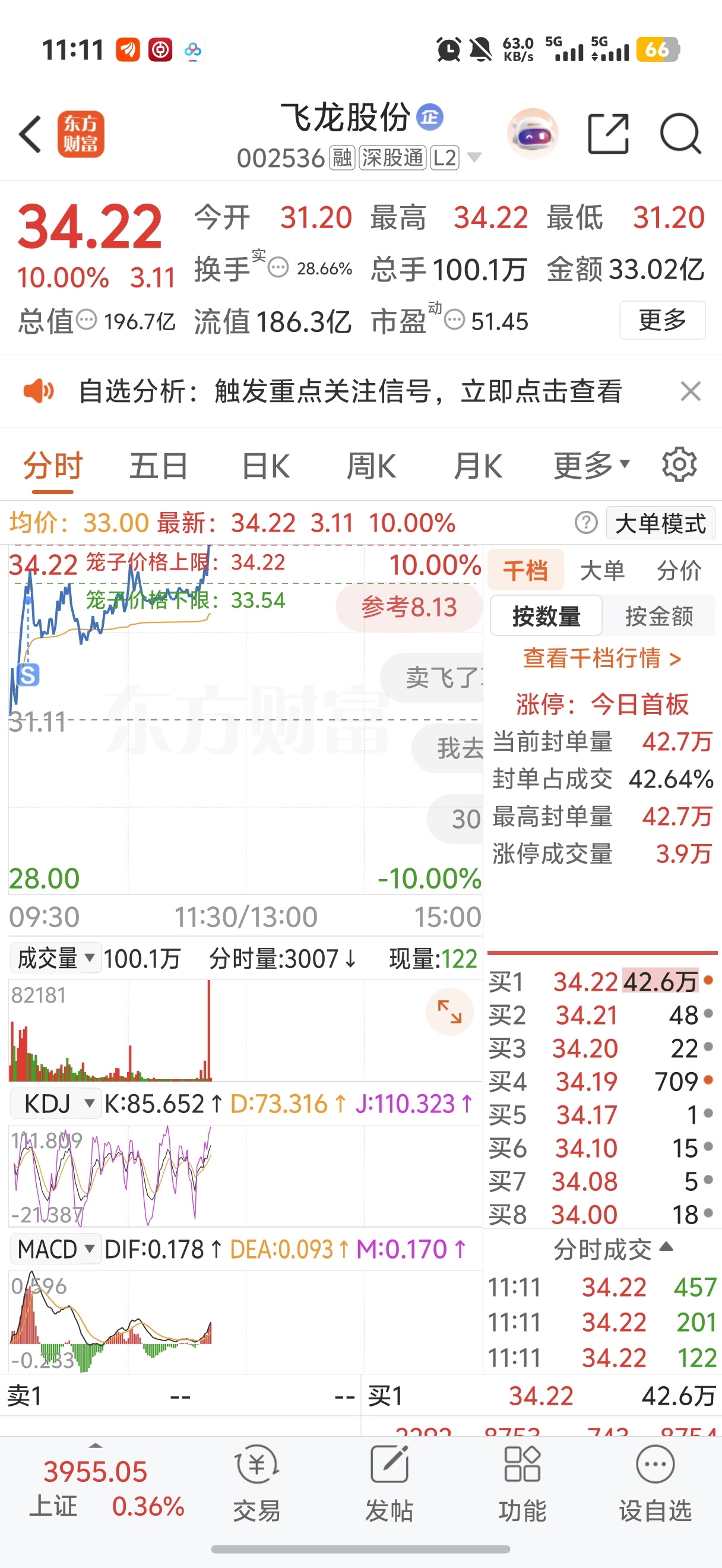 $飞龙股份(SZ002536)$ 涨停的朋友感谢我吧 因为我卖了