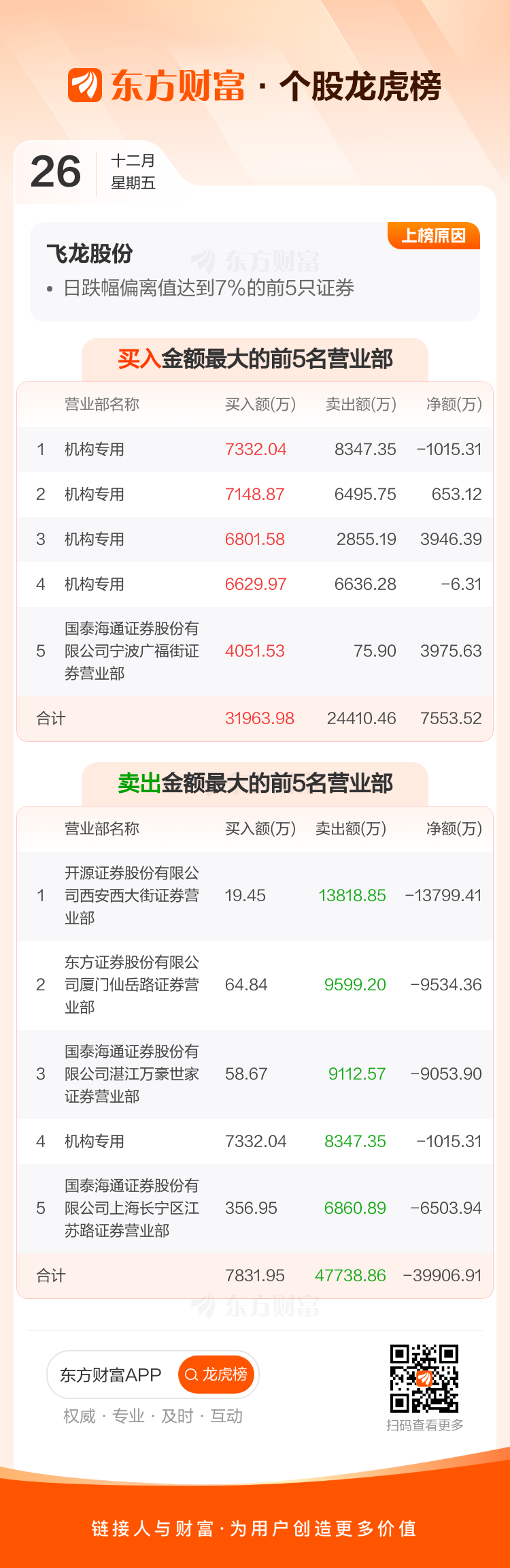 飞龙股份(002536)龙虎榜数据(12-26)