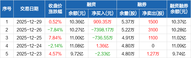 飞龙股份:融资净买入909.35万元,融资余额10.36亿元(12-29)