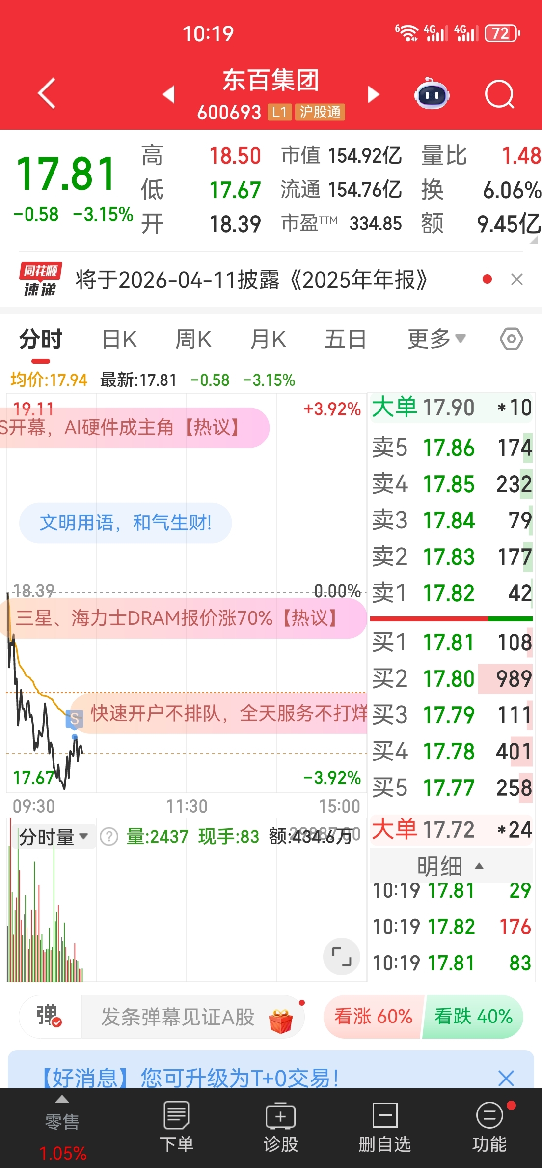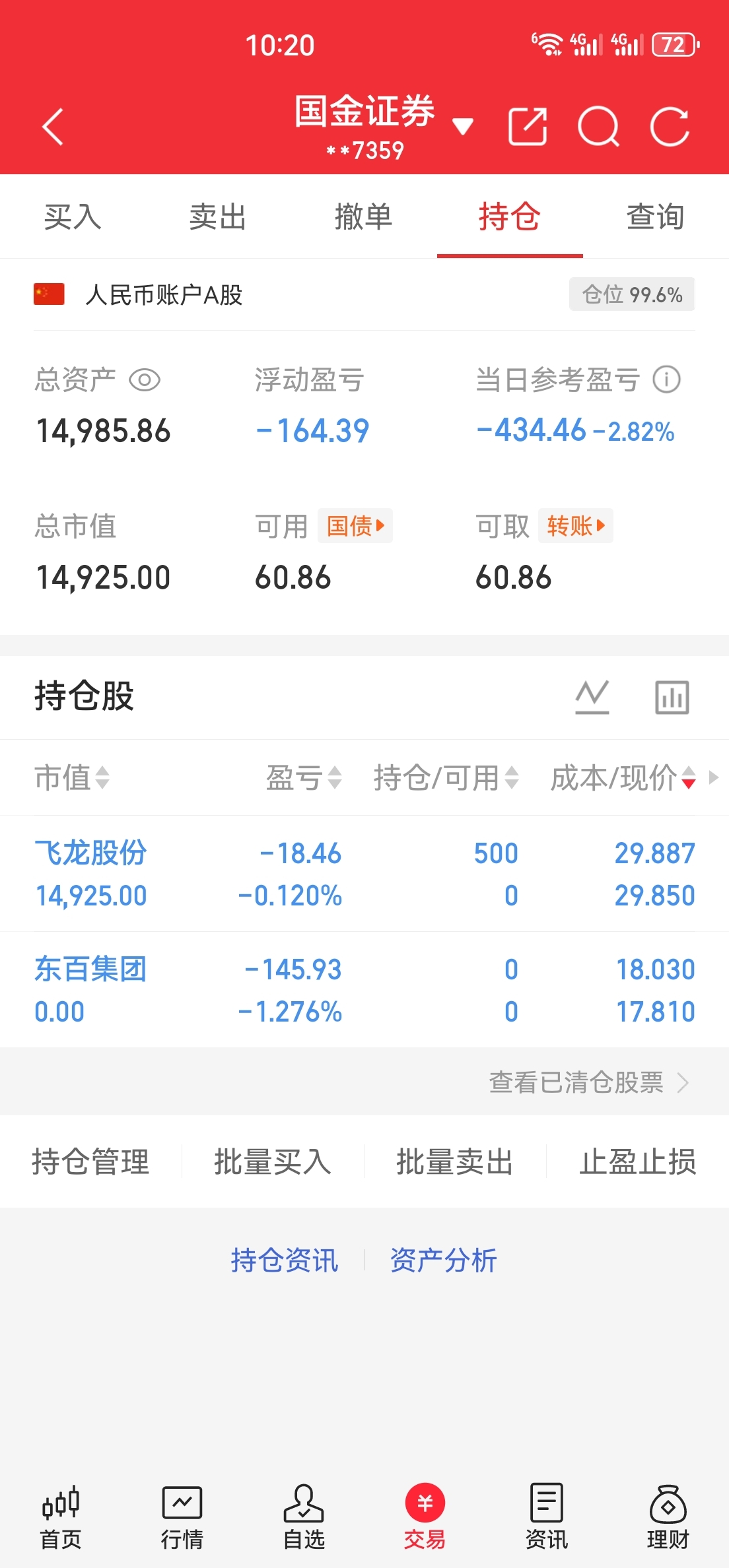 $飞龙股份(SZ002536)$ 一万到一百万第54天,东百-2.5走了,-3买了飞龙