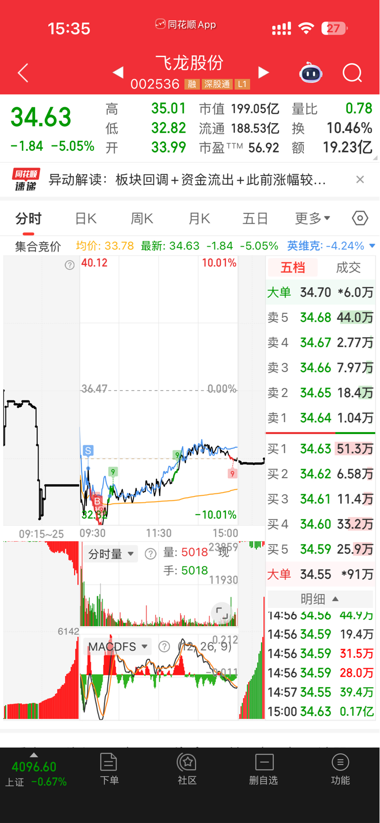 $飞龙股份(SZ002536)$ 今天完全是被错杀 明天看修复