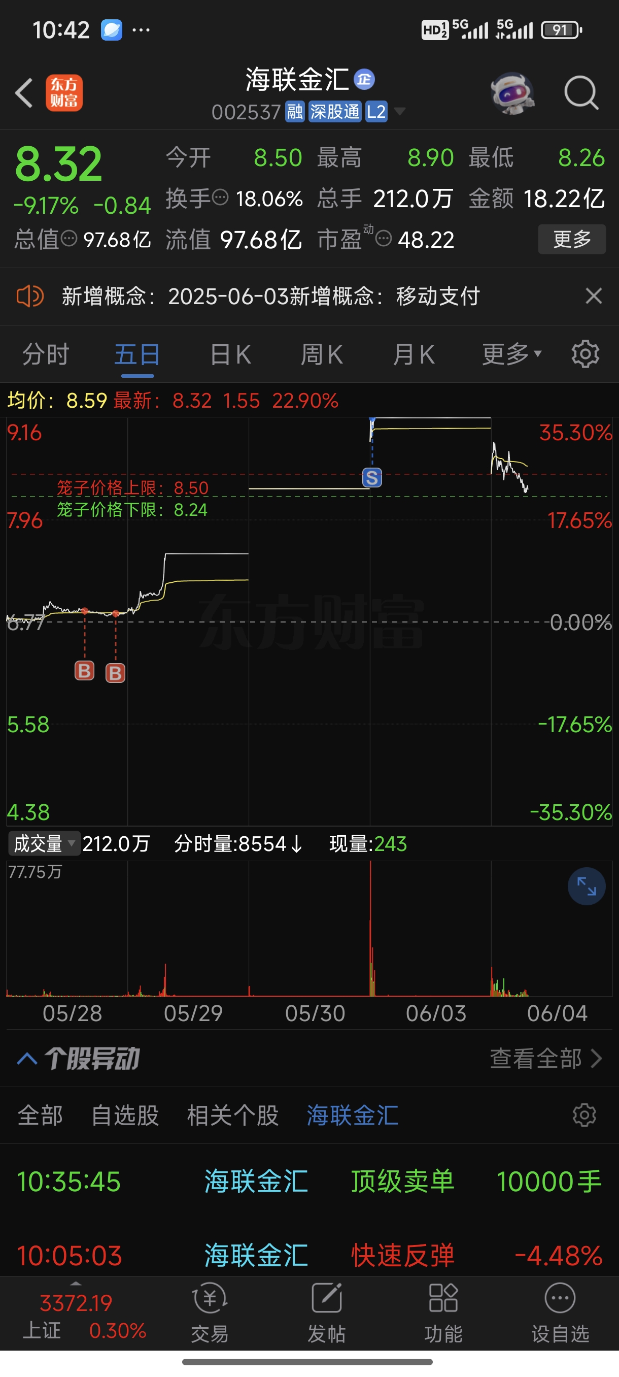 $海联金汇(SZ002537)$