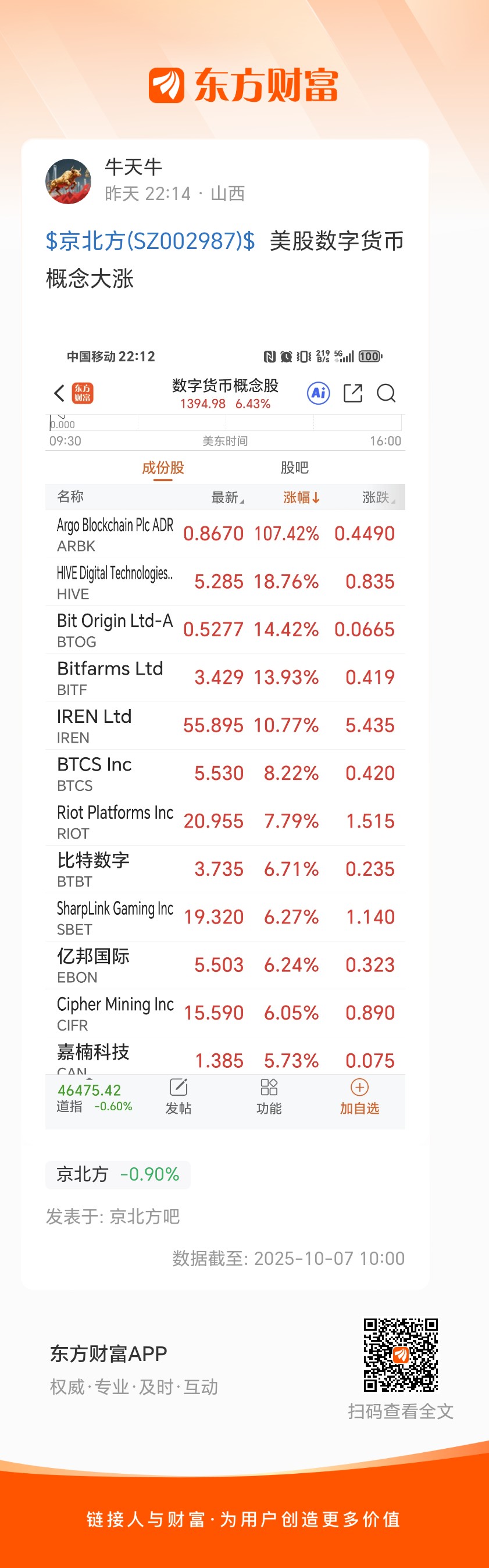 $京北方(SZ002987)$  美股数字货币概念大涨