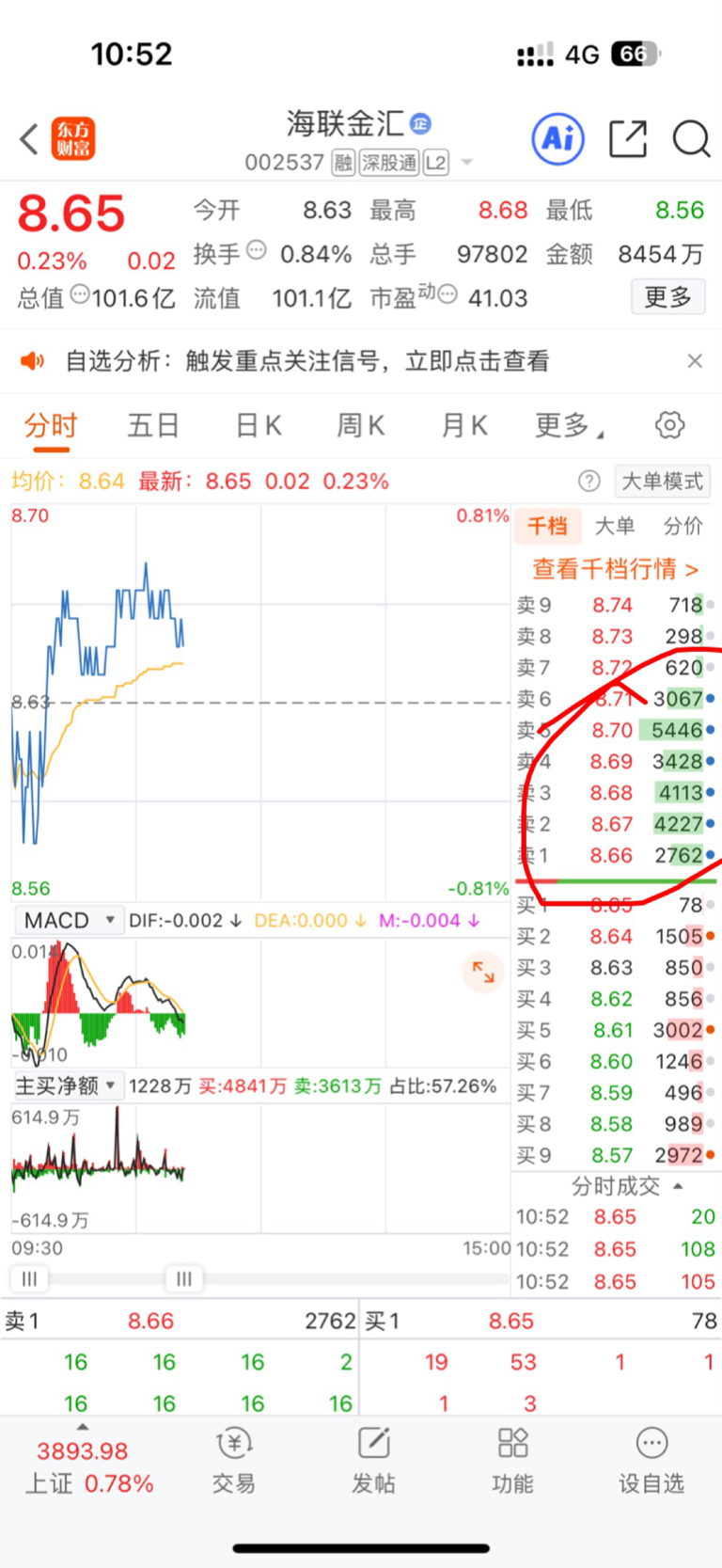 $海联金汇(SZ002537)$ 这个要是能涨,除非大盘上5000点。你们散户还一个个使劲买,钱多吗?