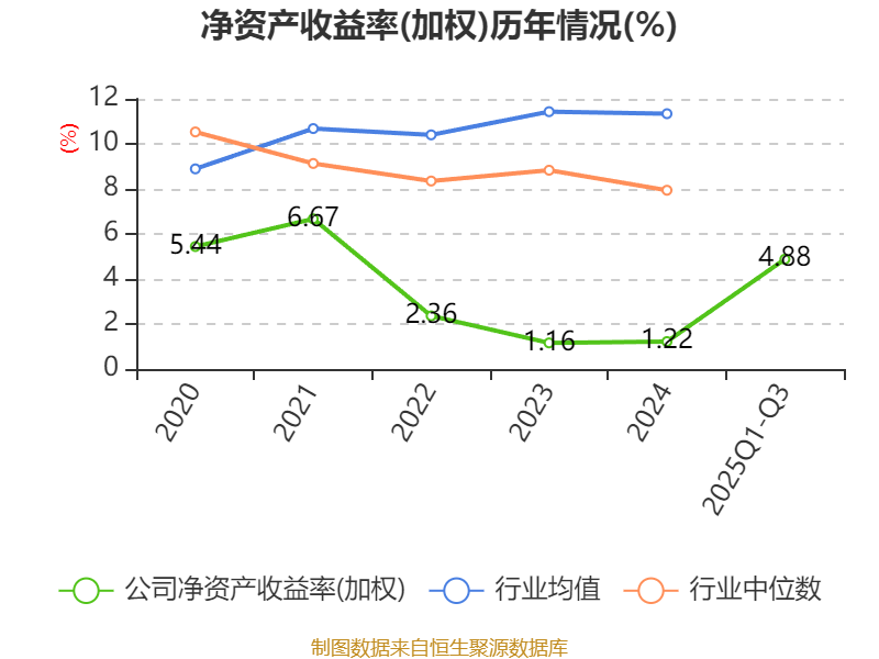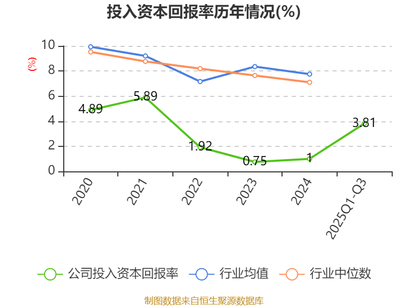 盈利能力方面, 2025年前三季度公司加权平均净资产收益率为4.88%,同比上升3.72个百分点。公司2025年前三季度投入资本回报率为3.81%,较上年同期上升3.08个百分点。