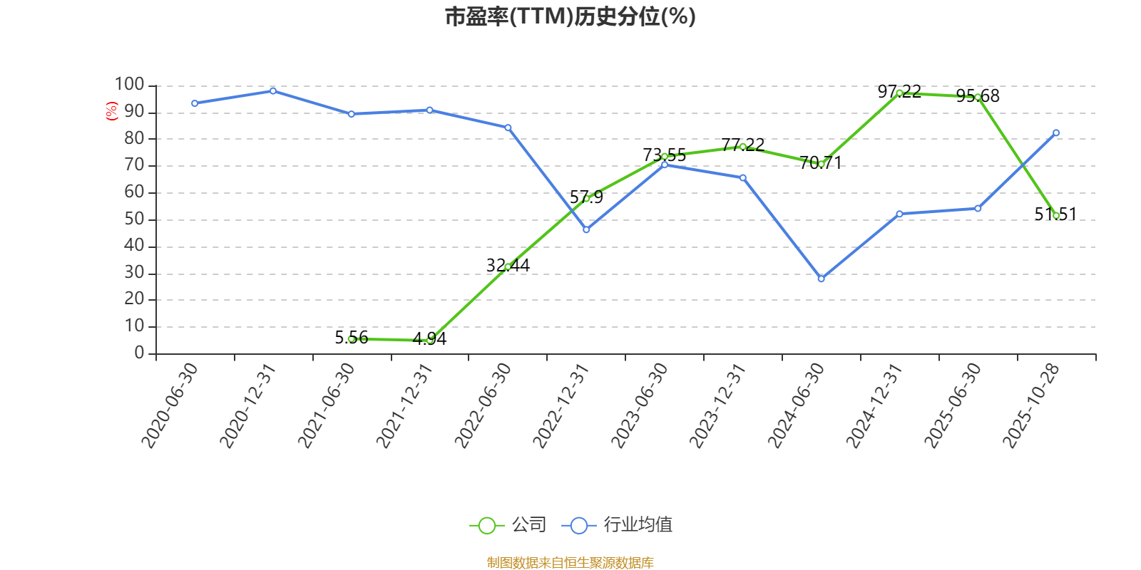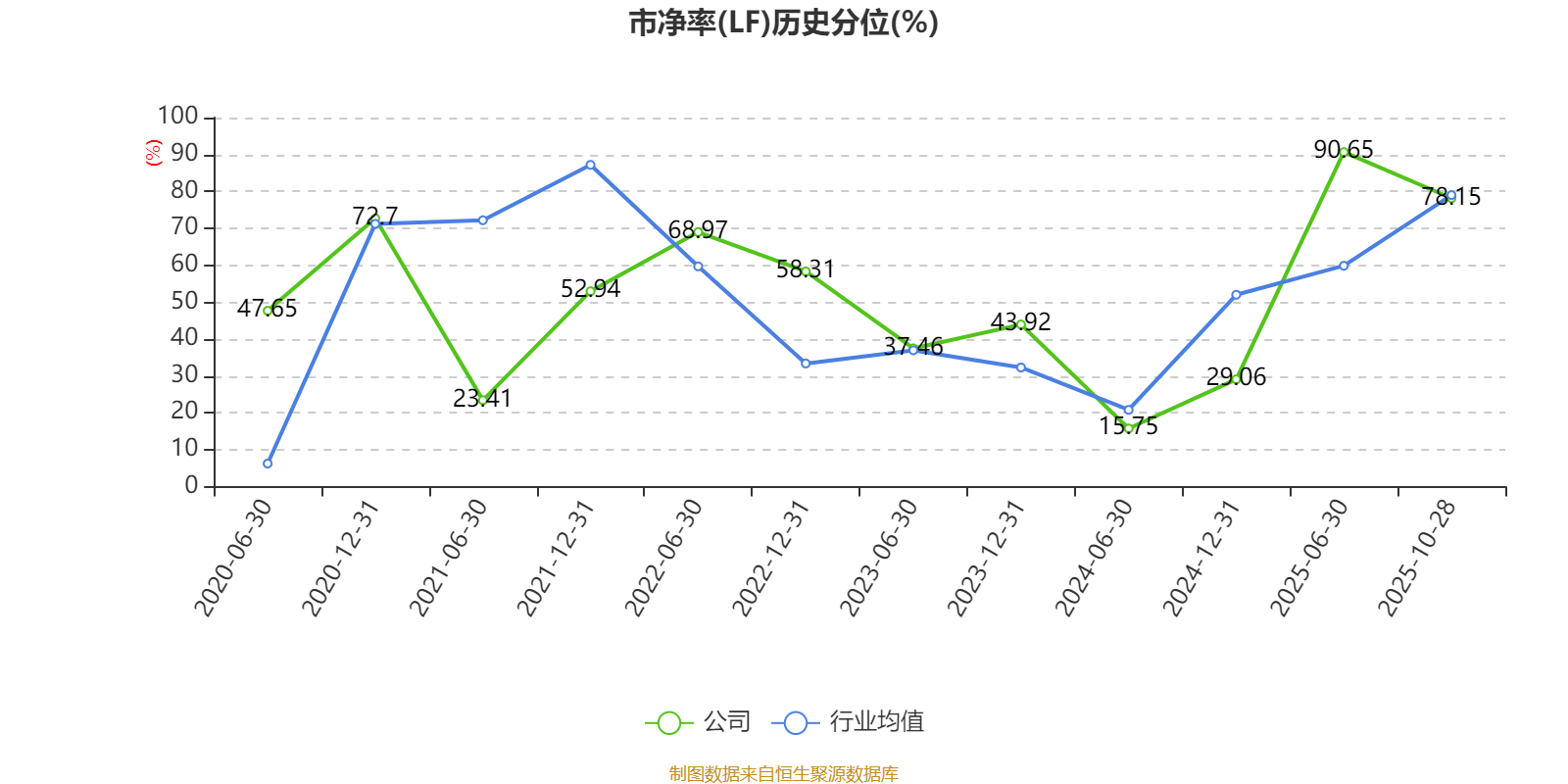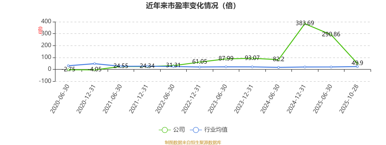 市盈率、市净率为负时,不显示当期分位数,会导致折线图中断。