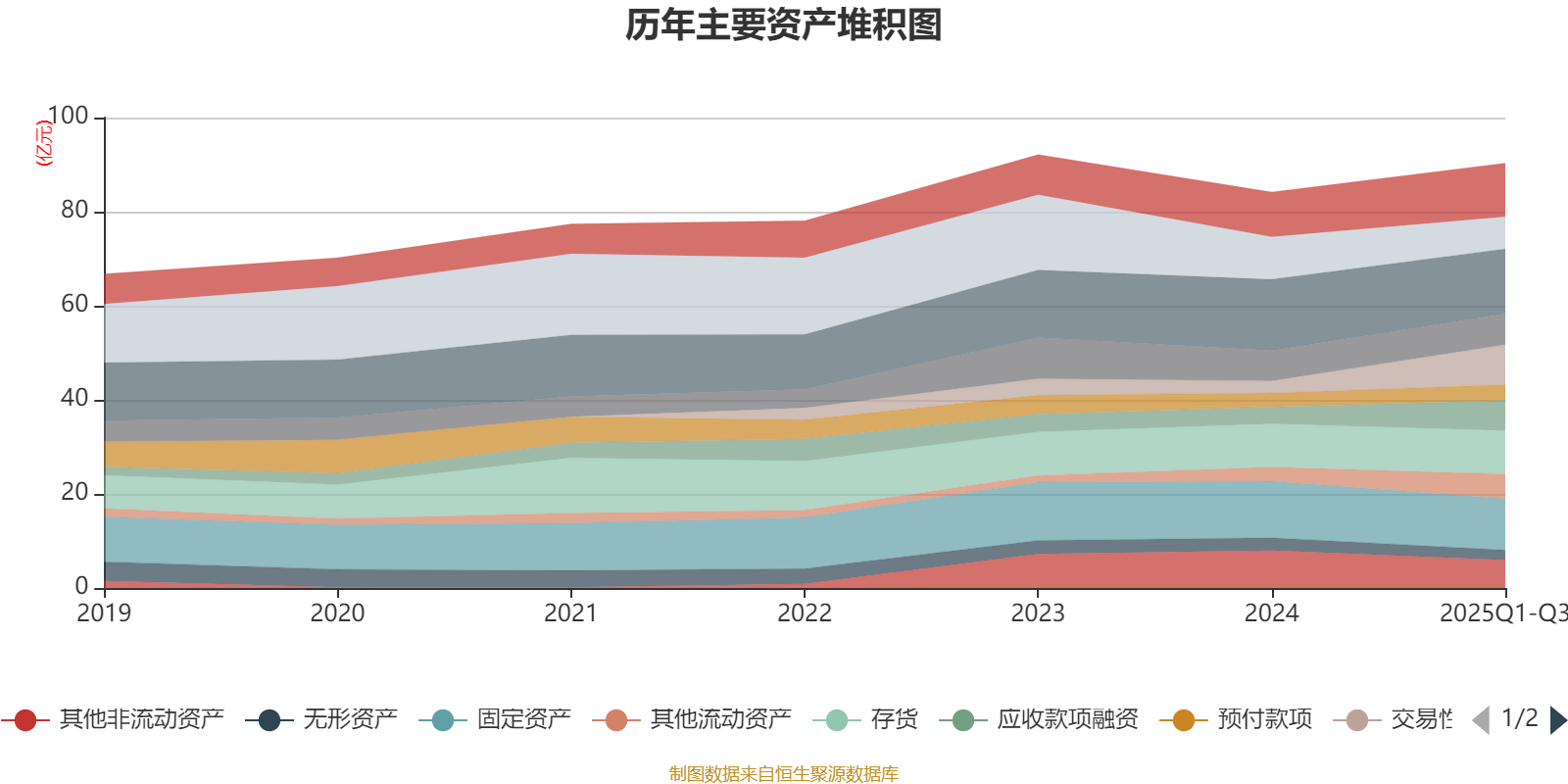 资产重大变化方面,截至2025年三季度末,公司交易性金融资产合计较上年末增加234.34%,占公司总资产比重上升6.39个百分点;货币资金较上年末减少24.58%,占公司总资产比重下降3.19个百分点;应收款项融资较上年末增加81.31%,占公司总资产比重上升2.92个百分点;其他非流动资产较上年末减少25.63%,占公司总资产比重下降2.91个百分点。