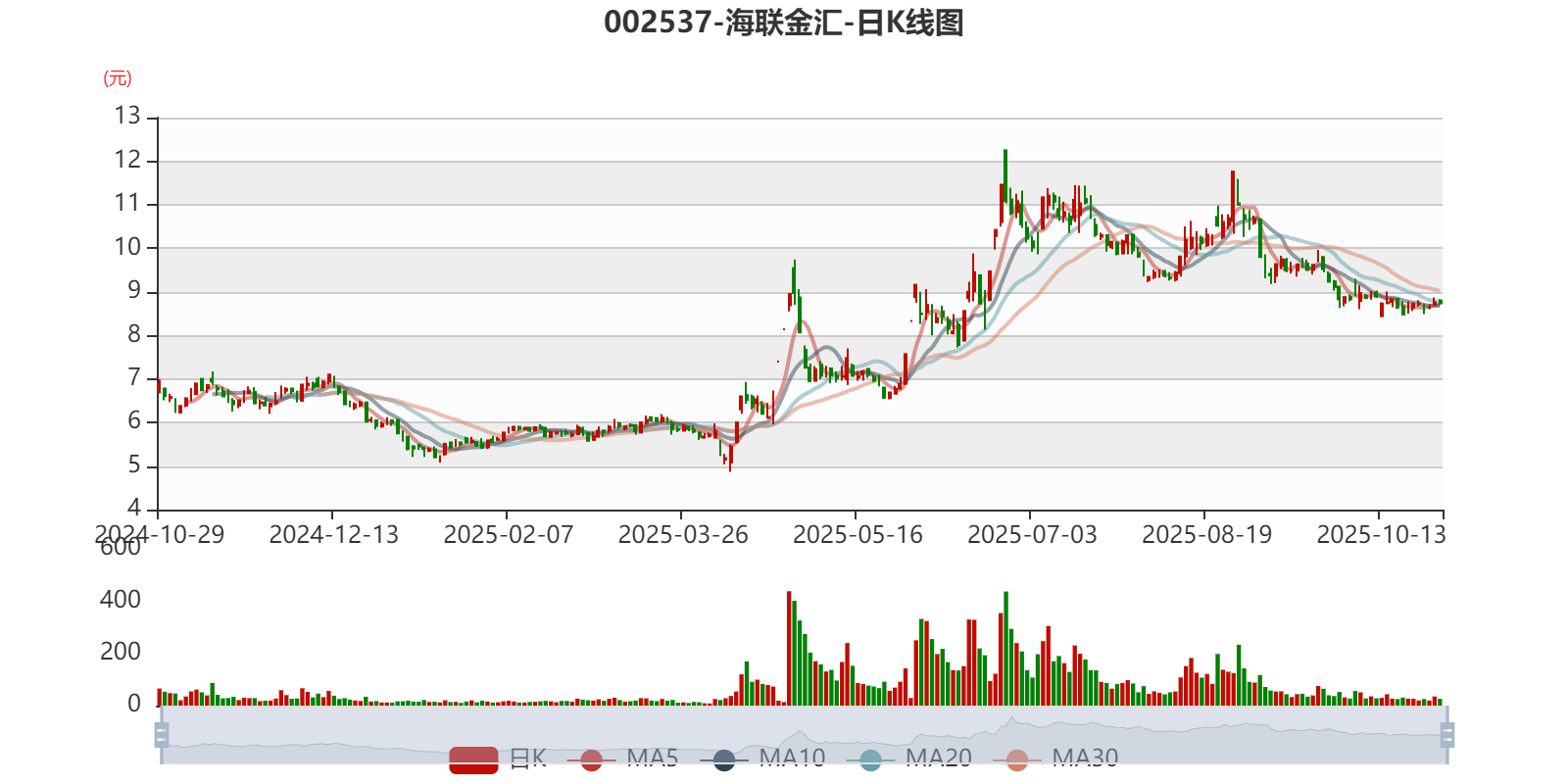 以10月28日收盘价计算,海联金汇目前市盈率(TTM)约为49.9倍,市净率(LF)约2.43倍,市销率(TTM)约1.55倍。
