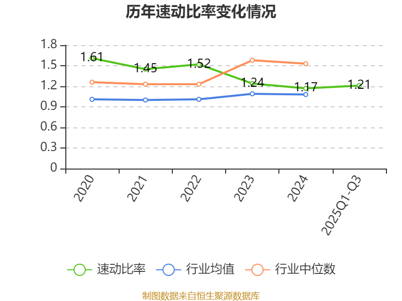 2025年前三季度,公司流动比率为1.42,速动比率为1.21。