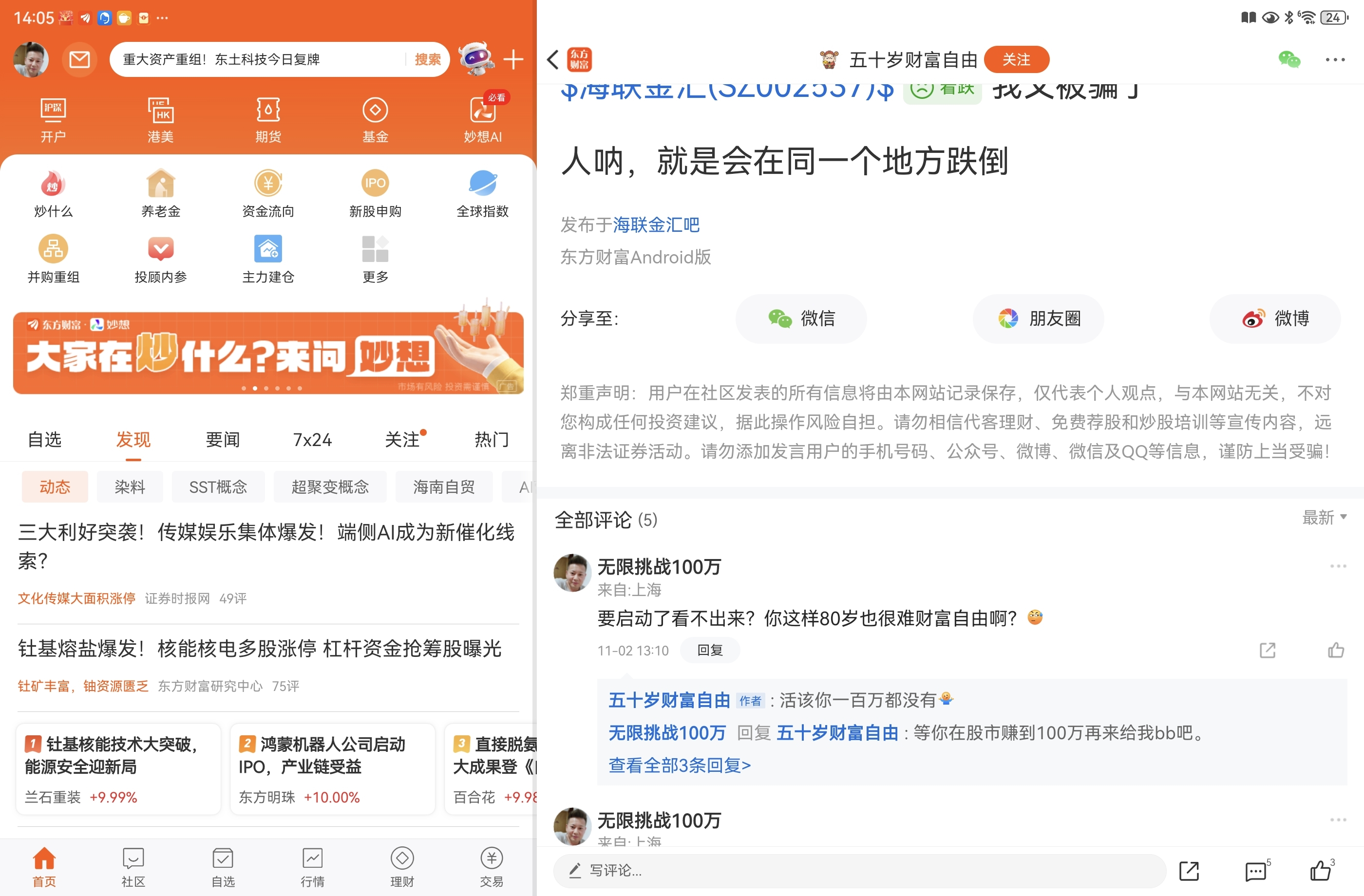 $海联金汇(SZ002537)$ 所以说人性 到底是什么样? 我说了这个票要启动了。他自己看不出来。给点点意见,还讽刺我。
