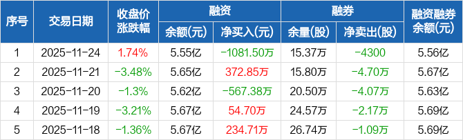 海联金汇:融资净偿还1081.5万元,融资余额5.55亿元(11-24)