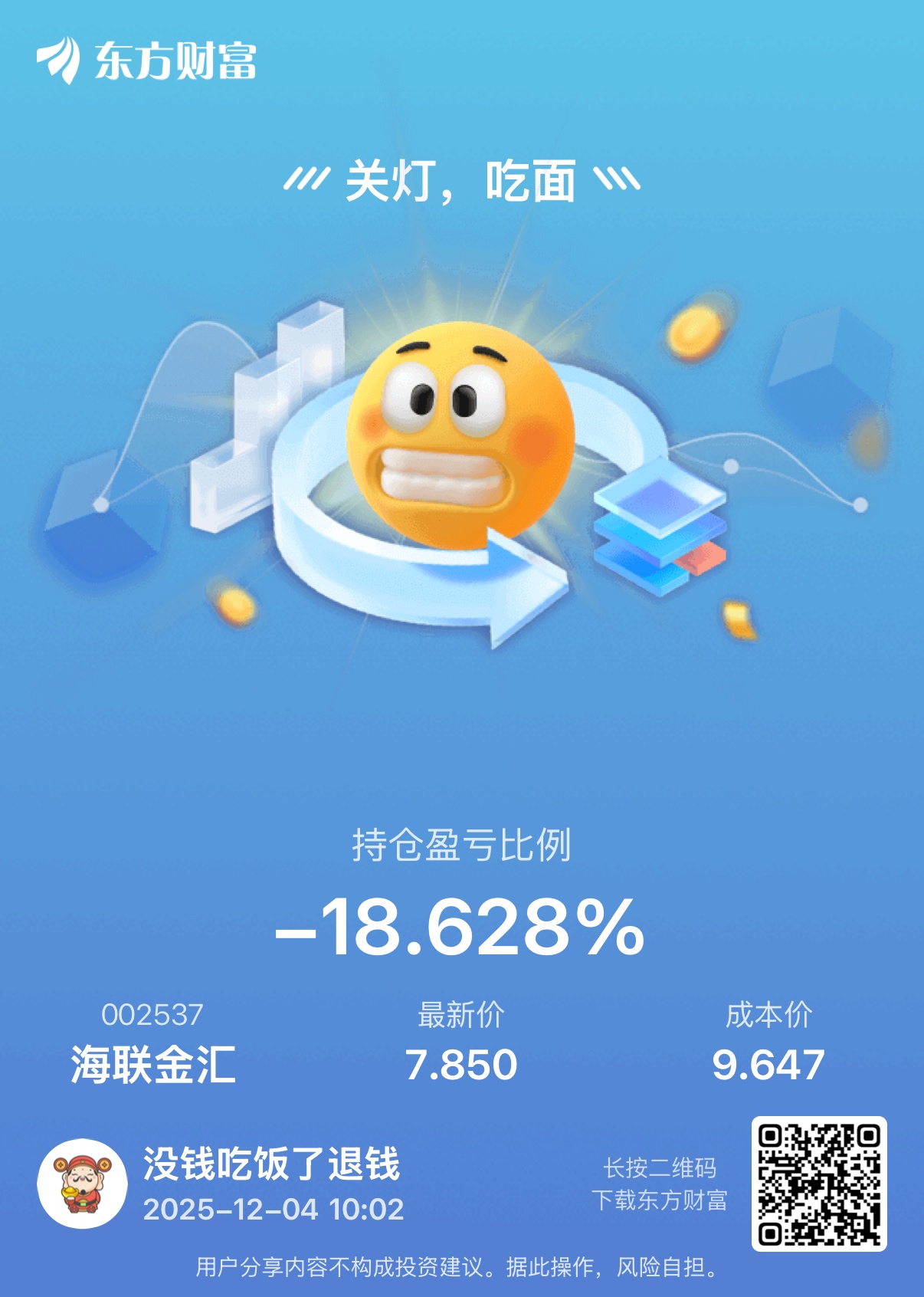 温馨提示: 1.根据《证券法》规定,禁止编造、传播虚假信息或者误导性信息,扰乱证券市场;2.用户在本社区发表的所有资料、言论等仅代表个人观点,与本网站立场无关,不对您构成任何投资建议。用户应基于自己的独立判断,自行决定证券投资并承担相应风险。《东方财富社区管理规定》