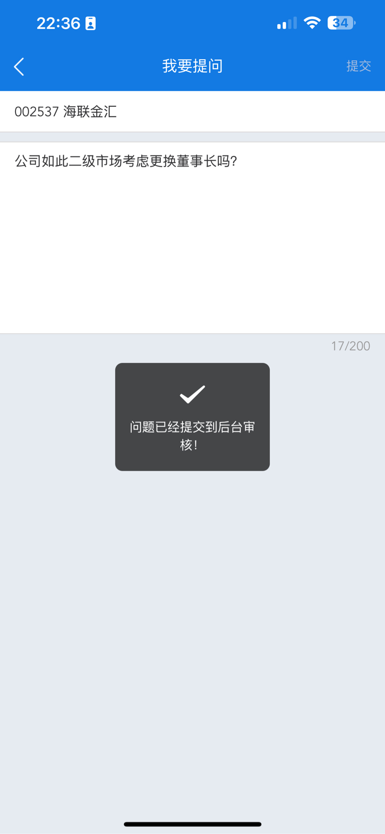 $海联金汇(SZ002537)$ 公司如此二级市场考虑更换董事长吗?
