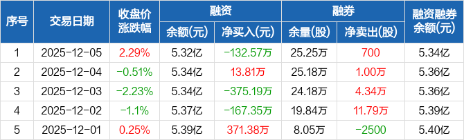 海联金汇:融资净偿还132.57万元,融资余额5.32亿元(12-05)