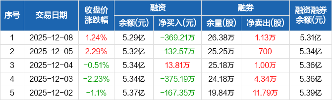 海联金汇:融资净偿还369.21万元,融资余额5.29亿元(12-08)