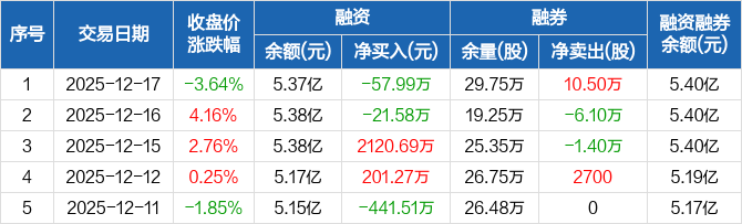 海联金汇:融资净偿还57.99万元,融资余额5.37亿元(12-17)