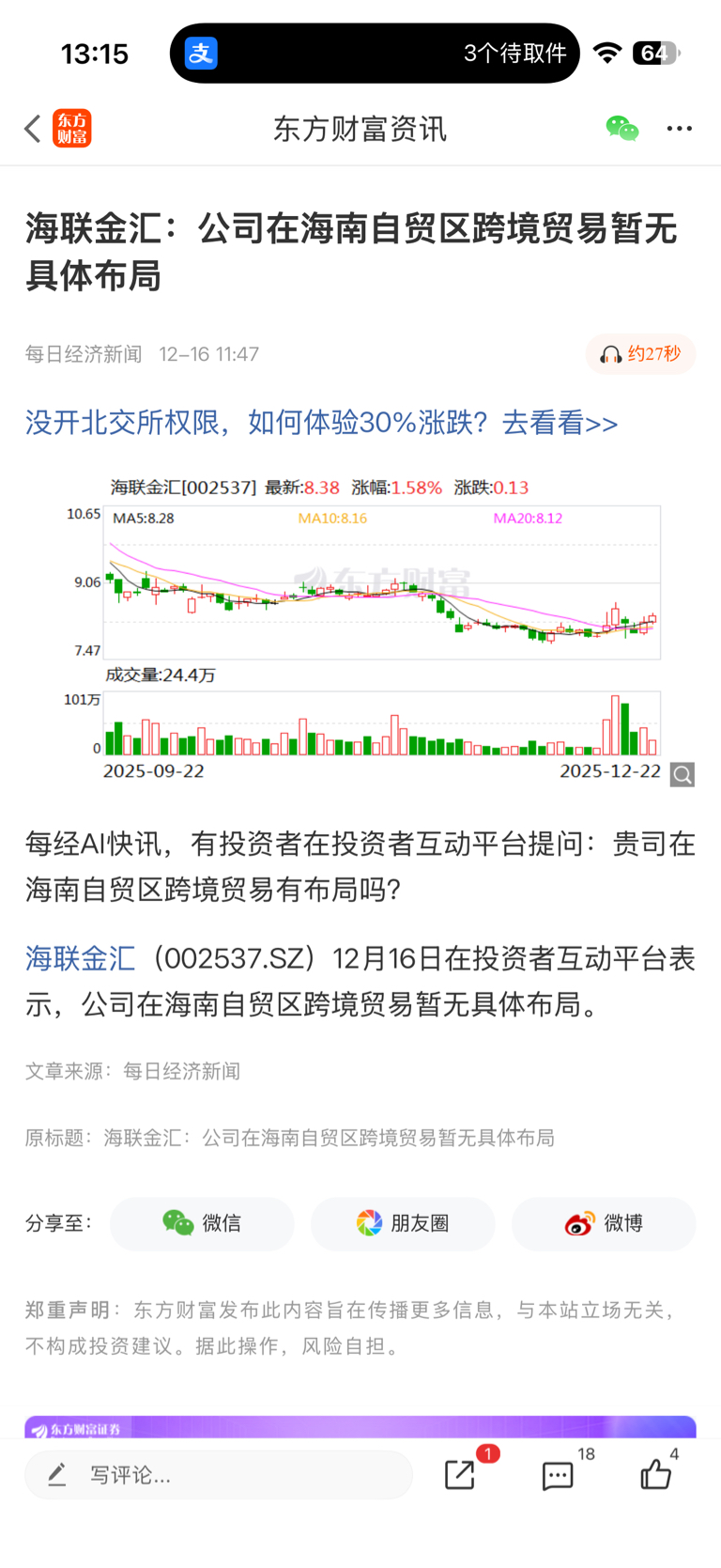 $海联金汇(SZ002537)$ 这伙吹票的机器人不看消息的嘛,闭着眼睛在这吹,难怪会跌