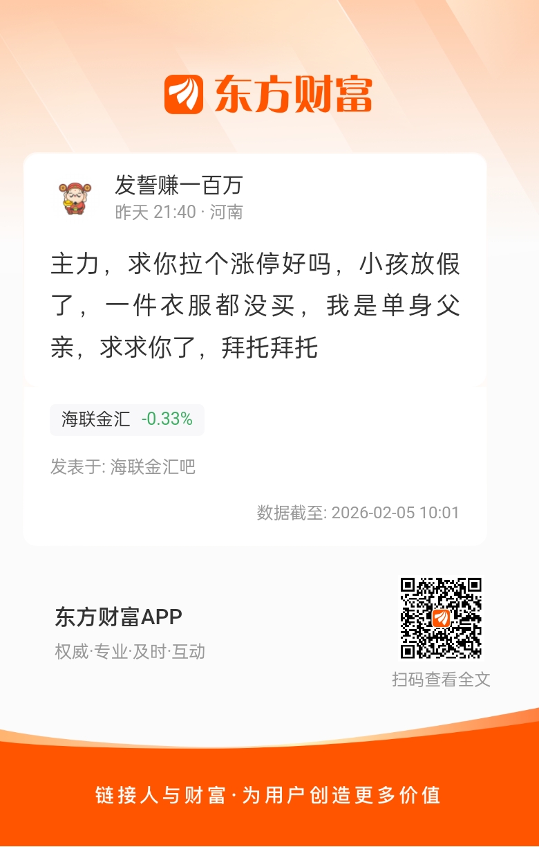 温馨提示: 1.根据《证券法》规定,禁止编造、传播虚假信息或者误导性信息,扰乱证券市场;2.用户在本社区发表的所有资料、言论等仅代表个人观点,与本网站立场无关,不对您构成任何投资建议。用户应基于自己的独立判断,自行决定证券投资并承担相应风险。《东方财富社区管理规定》