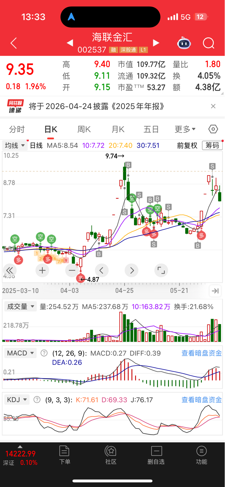$海联金汇(SZ002537)$ 去年在海联上吃了七个涨停板,今天9块3我又来了