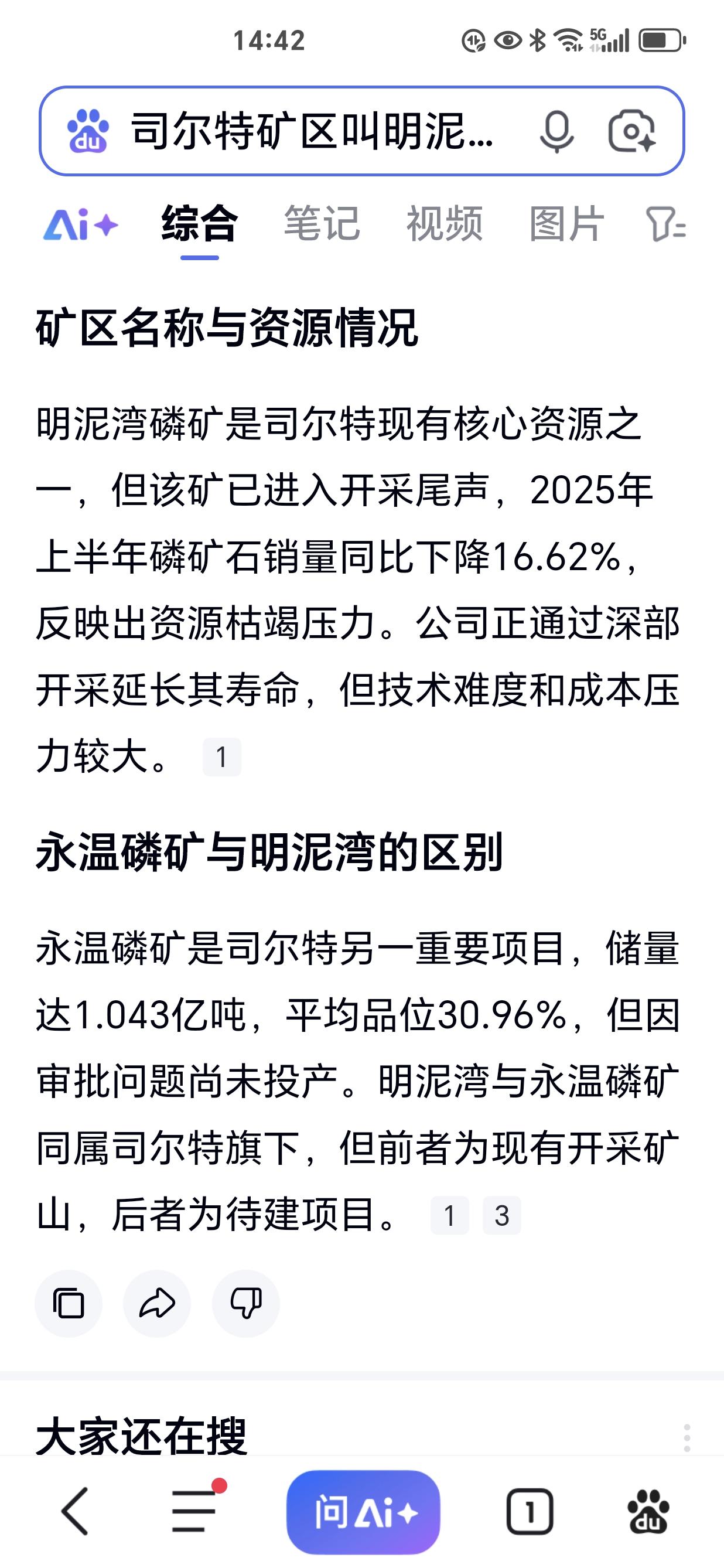 $司尔特(SZ002538)$ 我发的帖子竟然被删了,我就陈述了2个事实,一个是永温磷矿建设期是6年,不存在边挖边卖的情形,第二个是永温磷矿和南泥湾磷矿打通开采的方案前年被否了。