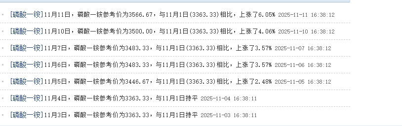 $司尔特(SZ002538)$ 磷肥一天一个价上涨中,生意社11月11日讯11月11日,河南地区55%粉磷酸一铵市场参考价为3600-3650元/吨左右,价格上调,实际成交商谈。