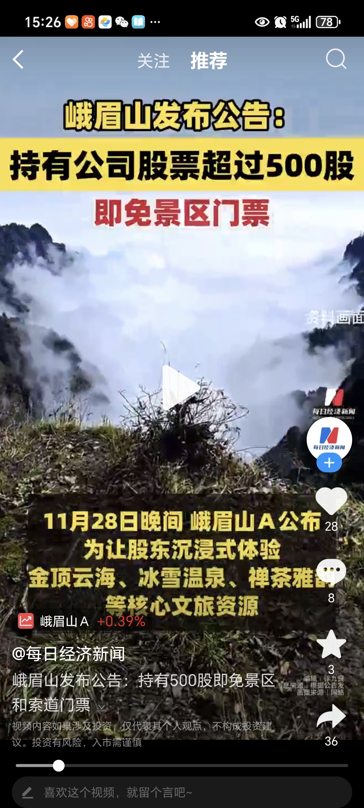 $司尔特(SZ002538)$ 峨眉山推出持有500股免门票,司尔特什么时候推出持有公司多少万股股票可以做司尔特经销商。