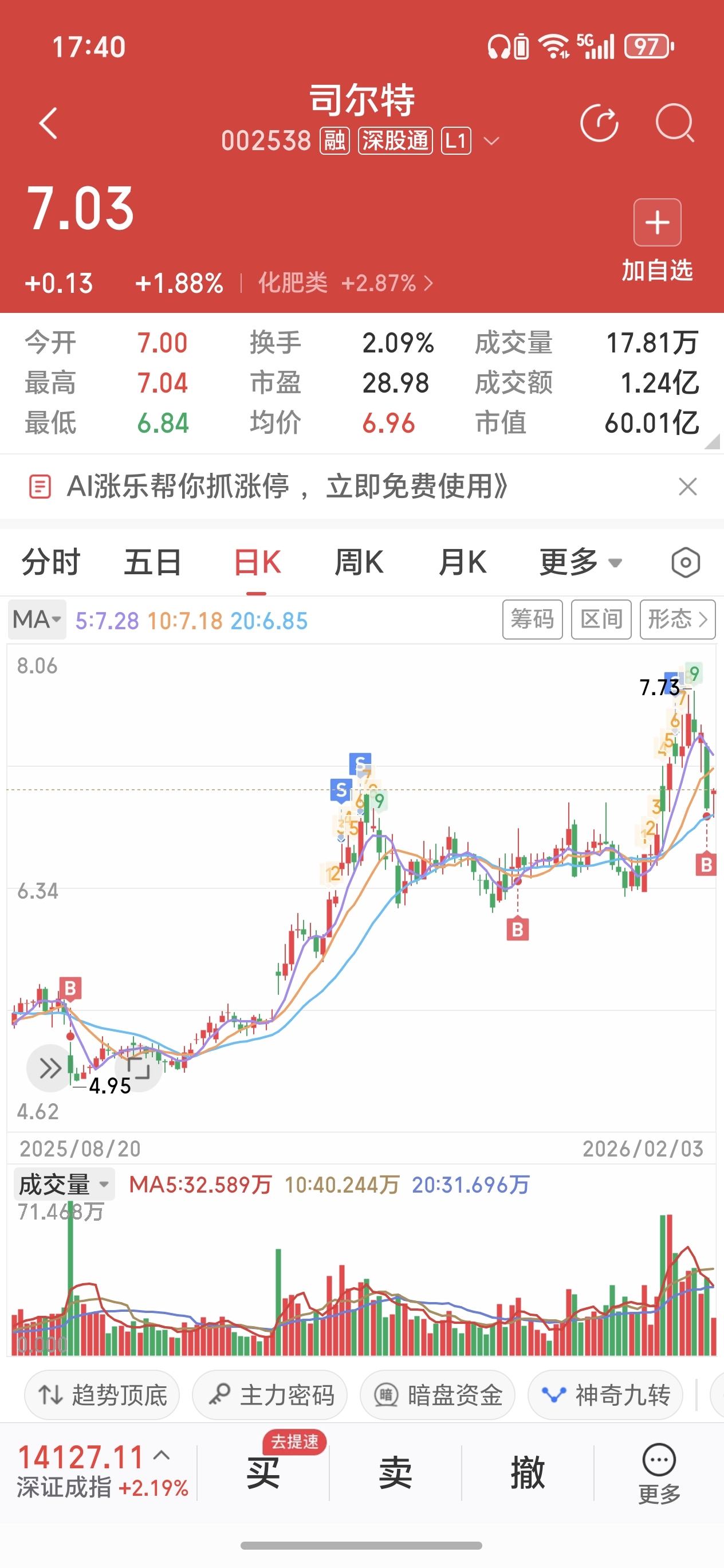 $司尔特(SZ002538)$ t不用总做