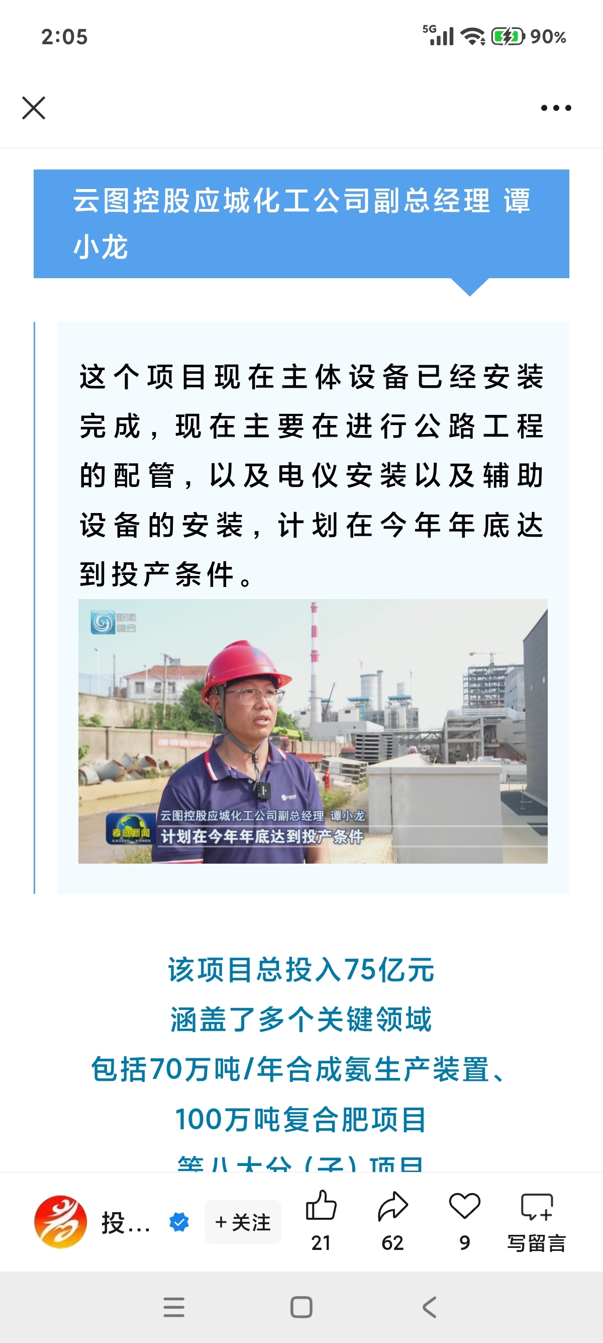 $云图控股(SZ002539)$ 应城项目年底完工