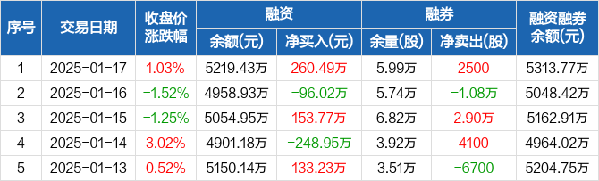 鸿路钢构:融资净买入260.49万元,融资余额5219.43万元(01-17)