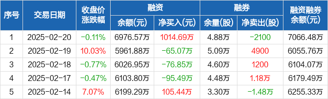 鸿路钢构:融资净买入1014.69万元,融资余额6976.57万元(02-20)