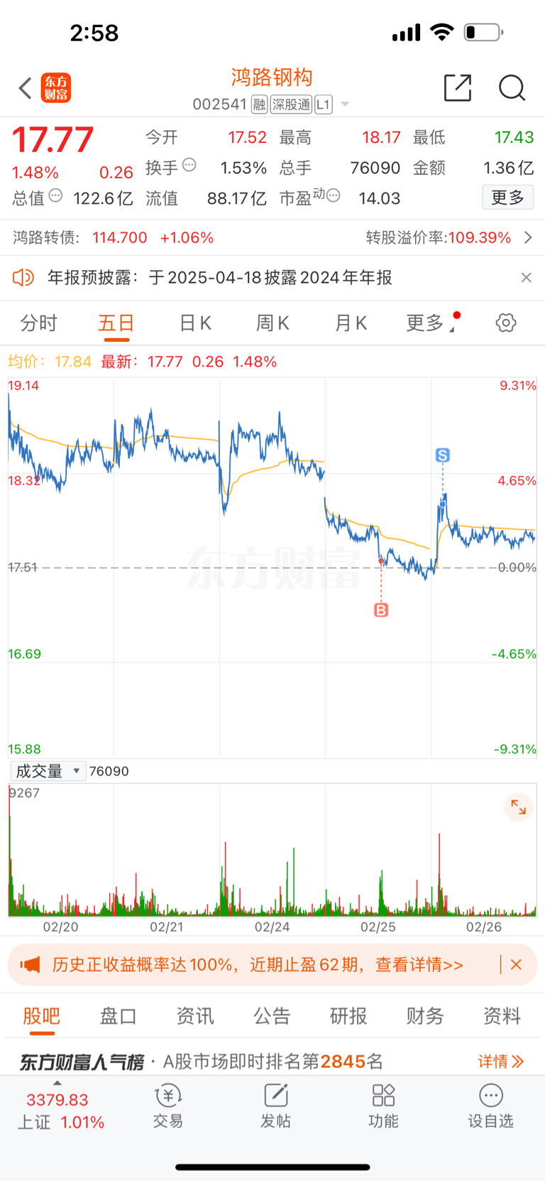 $鸿路钢构(SZ002541)$ #炒股日记# 谢谢主力,小赚2000走人。后续继续观察。