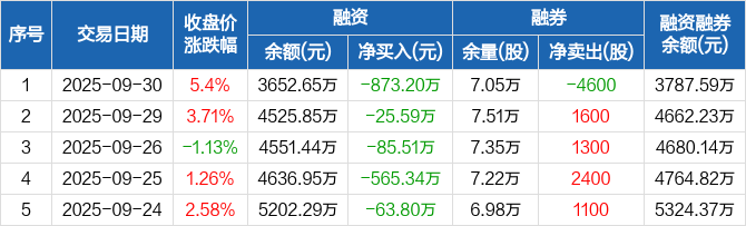 鸿路钢构:融资余额3652.65万元,创近一年新低(09-30)
