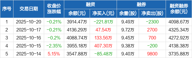 鸿路钢构:融资净偿还221.81万元,融资余额3914.47万元(10-20)
