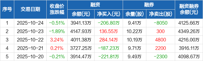 鸿路钢构:融资净偿还206.8万元,融资余额3941.13万元(10-24)