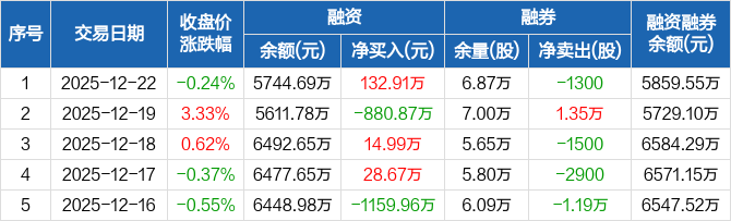 鸿路钢构:融资净买入132.91万元,融资余额5744.69万元(12-22)
