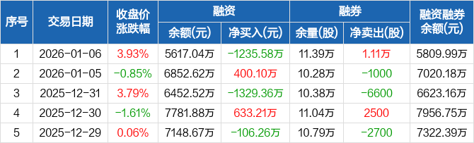 鸿路钢构:融资净偿还1235.58万元,融资余额5617.04万元(01-06)