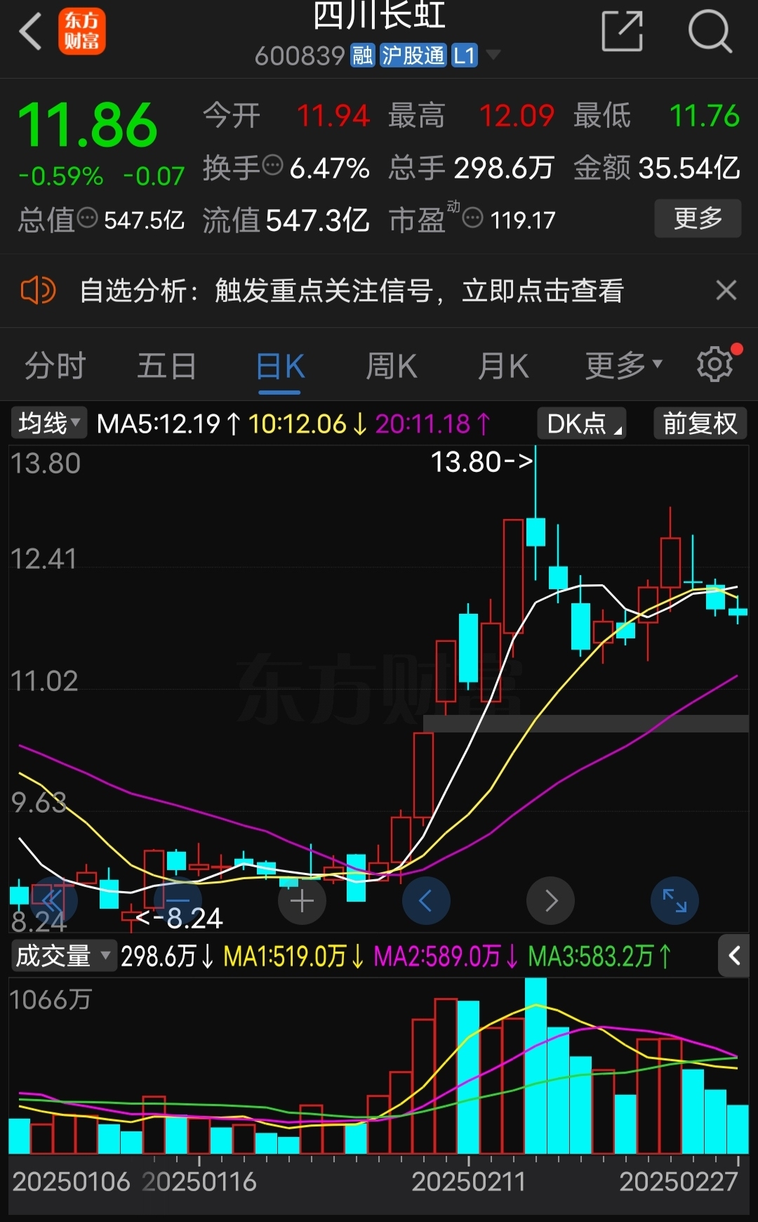 $中化岩土(SZ002542)$ 和长虹的走势有点像