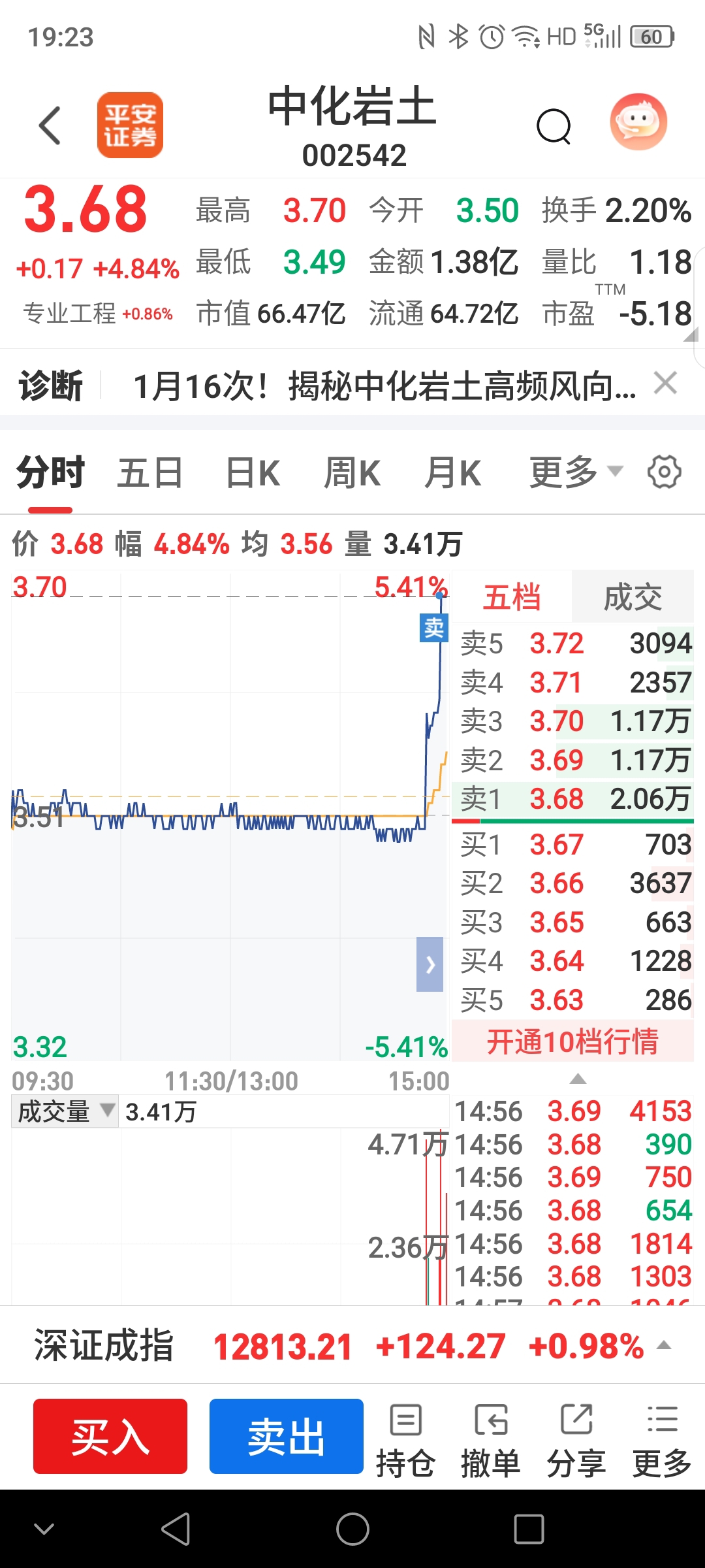 $中化岩土(SZ002542)$ 先卖一半再说,才买几天就亏2000,受不了