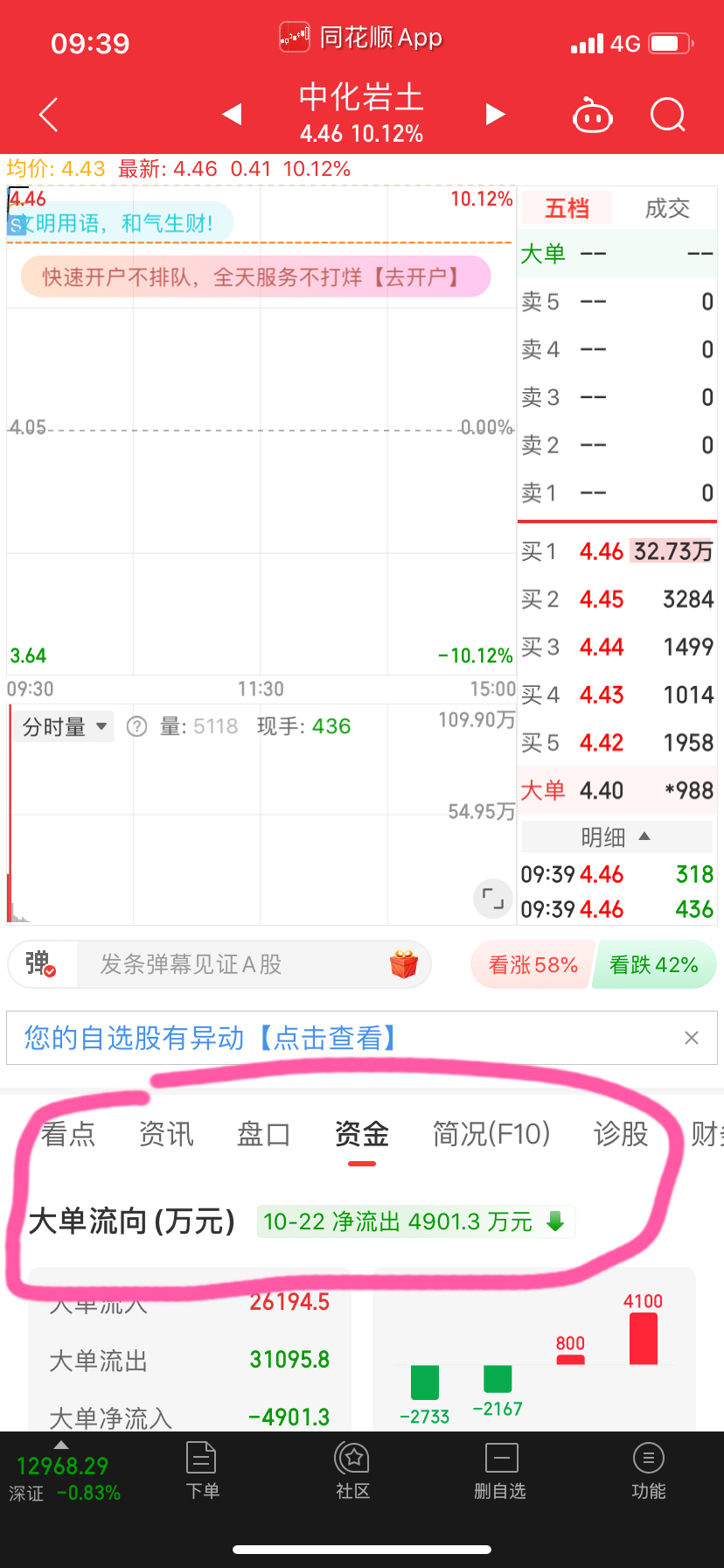 $中化岩土(SZ002542)$ 不懂就问,我圈出来的 资金是流出的 为什么还是涨停